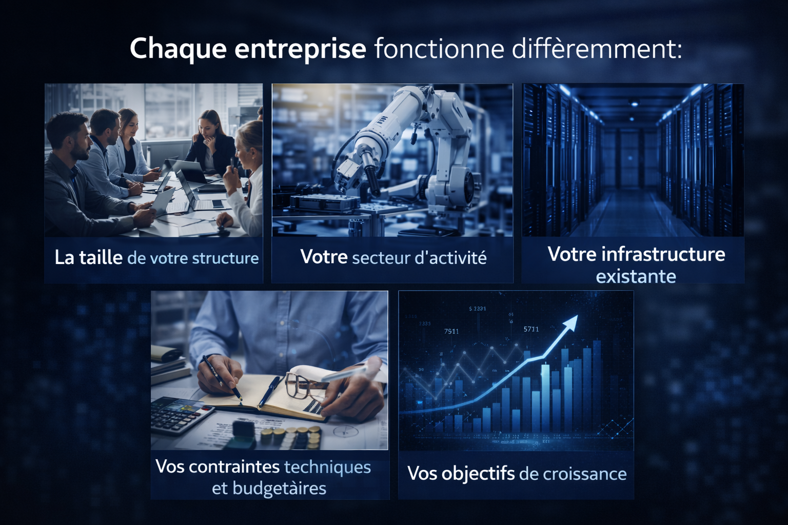 Chaque entreprise fonctionne différemment. Une solution informatique efficace doit prendre en compte :